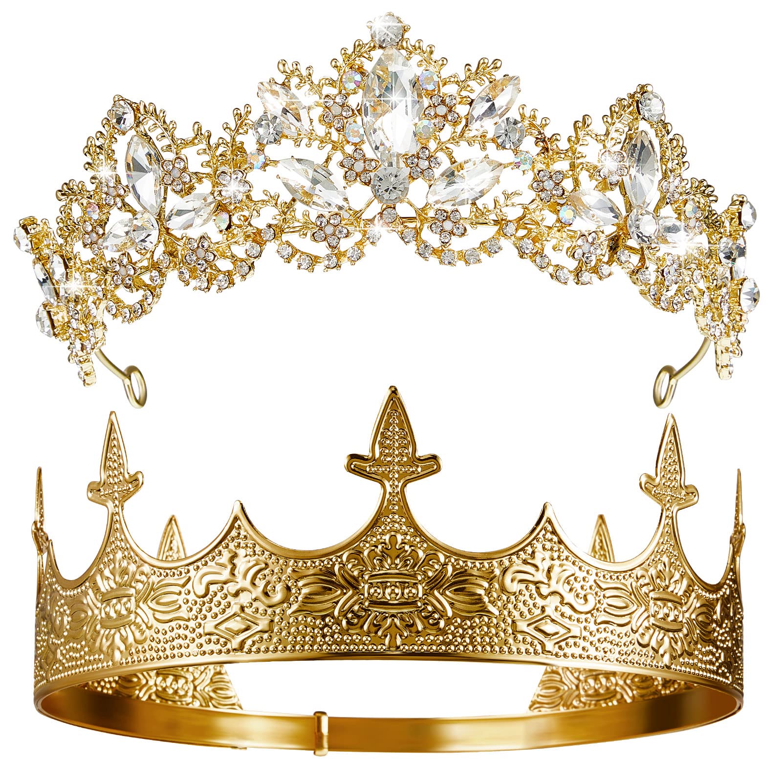 - Elegant and Exquisite Appearances: these crowns for women wedding are full of the retro baroque style, looking elegant and chic, showing the beauty of ladies by the crystals and diamonds; The carving pattern on the men's crown will display the calm and open mind of men, to attract the eyes of most people