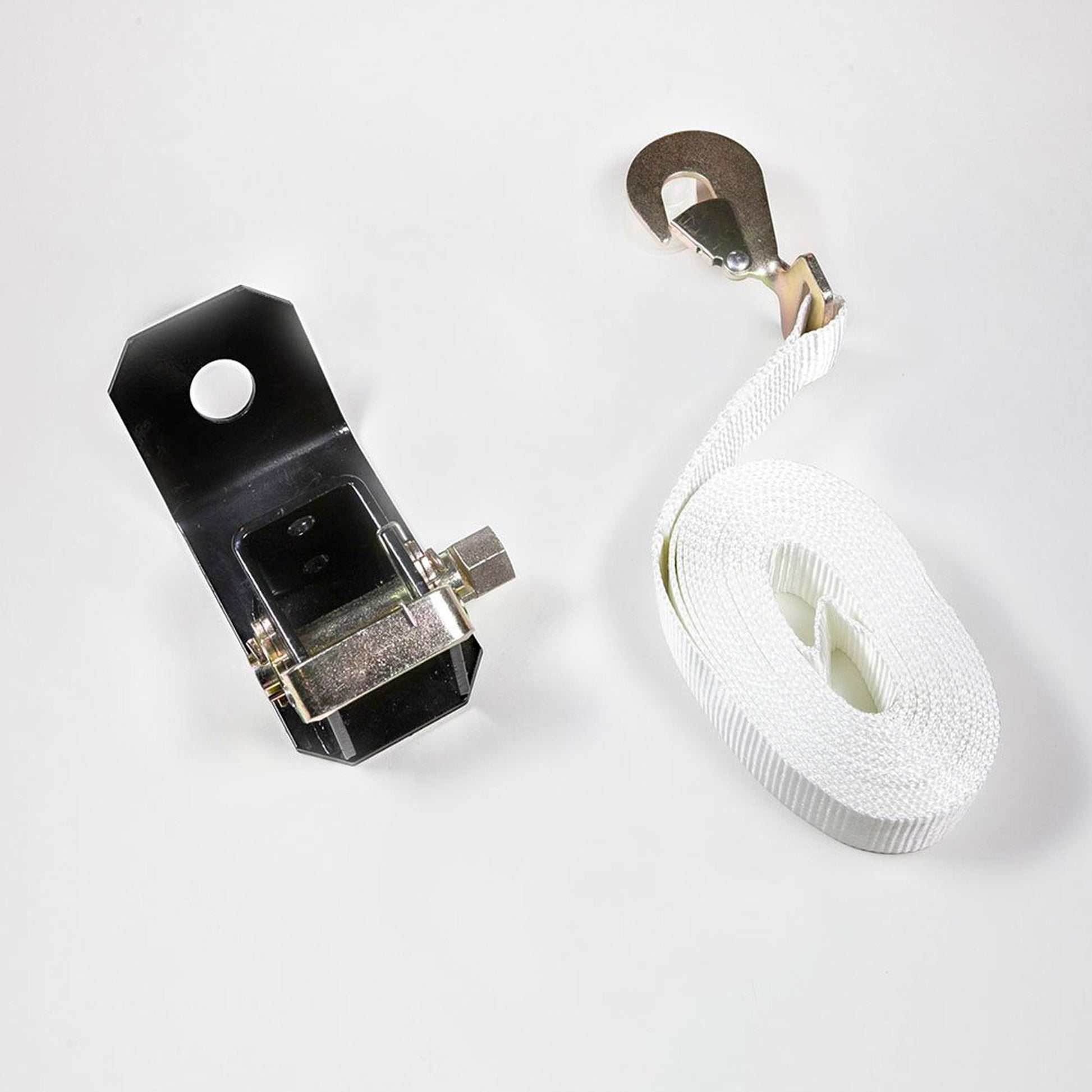 Introducing the Box Ratchet & 2” x 20’ Webbing Combo – the ultimate solution for secure strapping. This combo includes a Box Ratchet with a base plate, paired with a 2” x 20’ webbing featuring a snap hook.