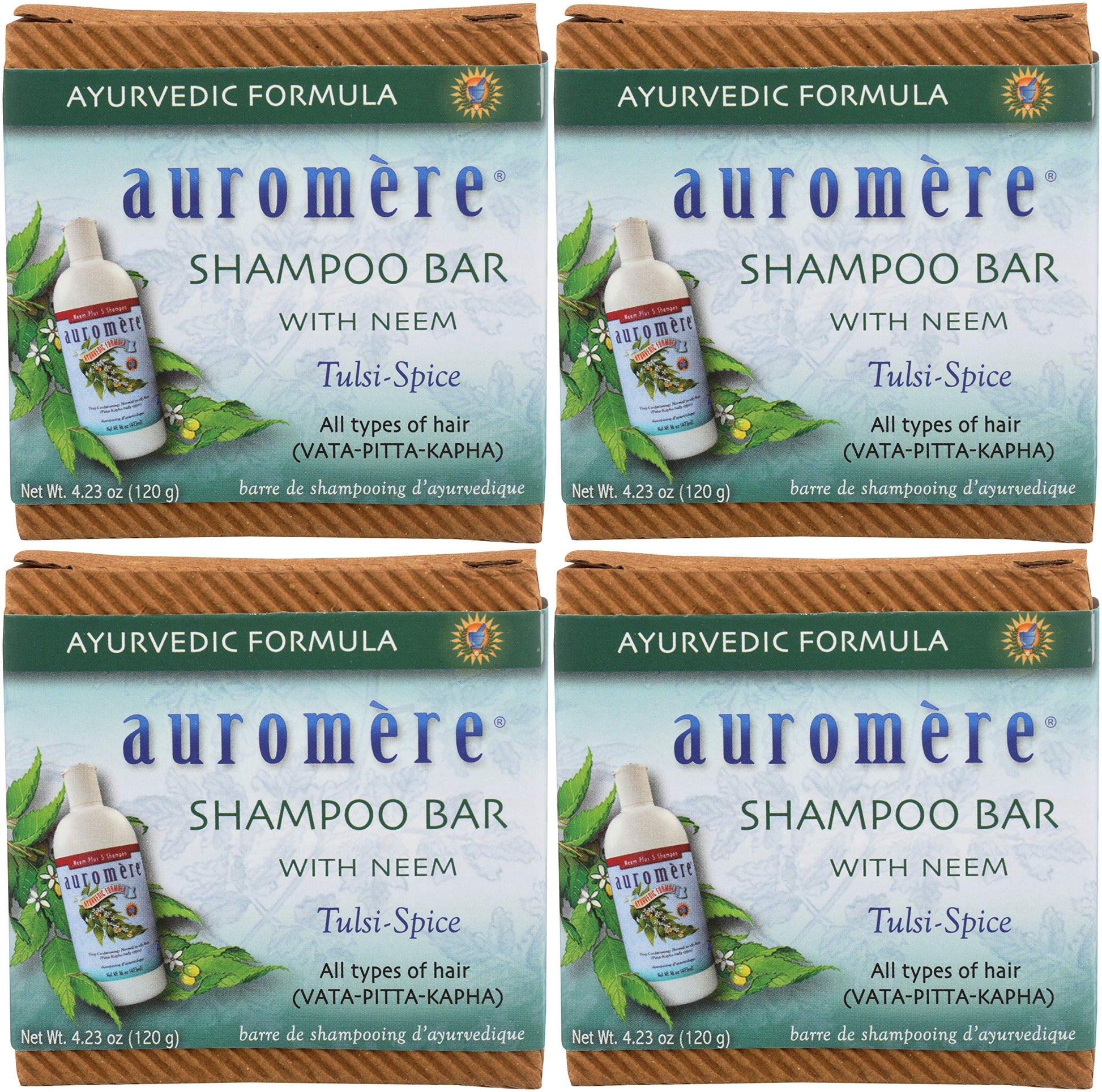 Auromere Ayurvedic Shampoo Bar - Eco Friendly, Handmade, Vegan, Cruelty Free, Natural, Non GMO, All in One Bar for Soap and Shampoo (4.23 oz), 4 pack