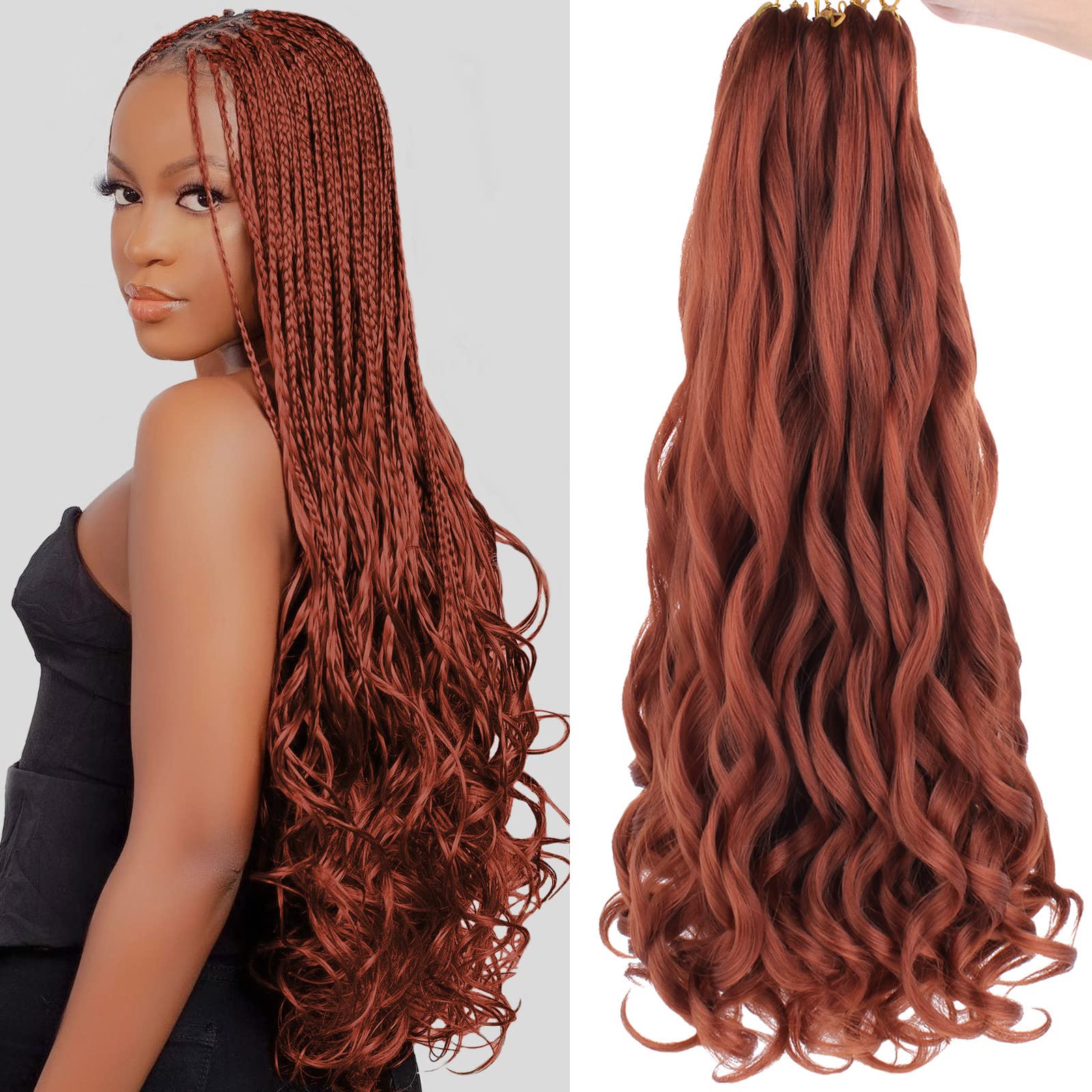 COOKOO 9 Packs 22 Inch Premium Bouncy Braids Hair French Curl Braiding Hair Ginger for Black Women Pre-Stretched Wavy Texture Braiding Synthetic Hair Extensions for Butterfly Locs 350#
