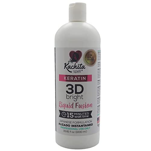 Details: Kachita Spell Keratin 3D Bright Liquid Fusion 33.8oz 1L, Infused with Chocolate. This Brazilian formula has been taken to the next level. It restores and straightens any type of thick, curly, damaged and color treated hair. Famous for its smoothing results, this American hair straightener has been providing delightful results for the last 10 years to a lot of beauty salons world wide. Your clients will thank you for the great results and you will become their favorite hairstylist. Made in USA.