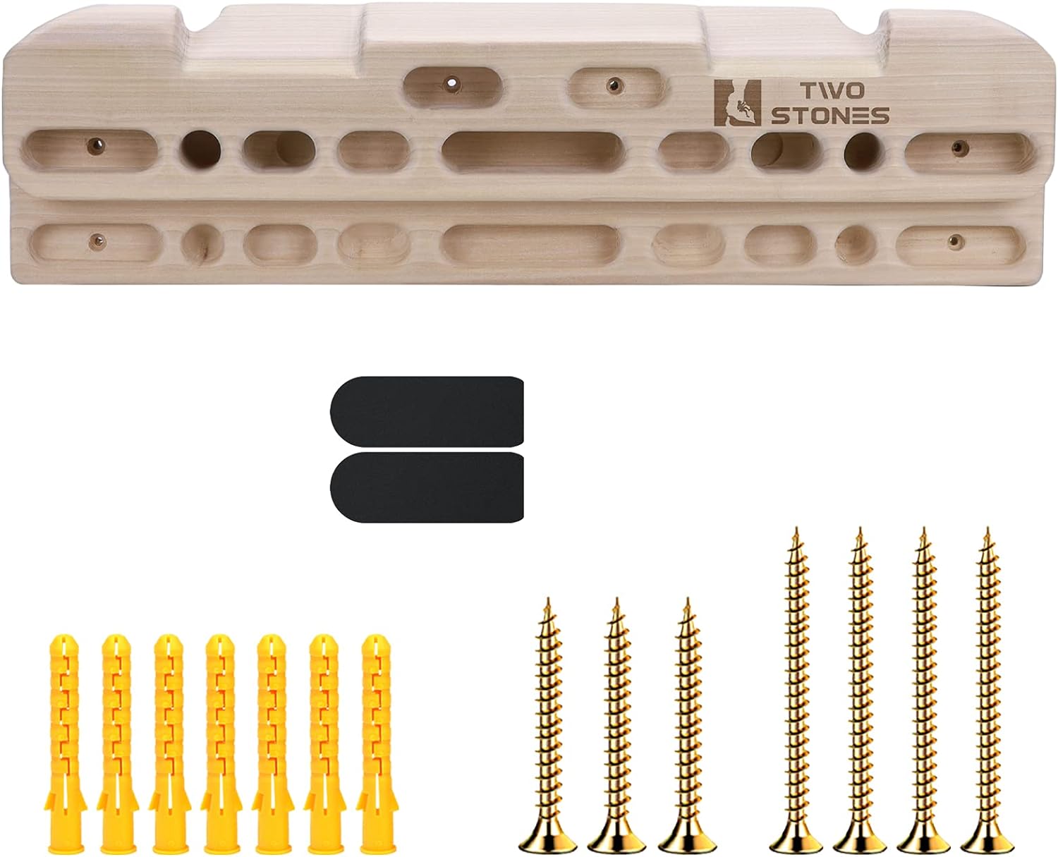 TWO STONES Wooden Hangboard Rock Climbing Pull Up Bar Designed Training for Climbing, Wooden Fingerboard Climbing Training Board for Building Core Strength and Endurance (CJ-HB2050)